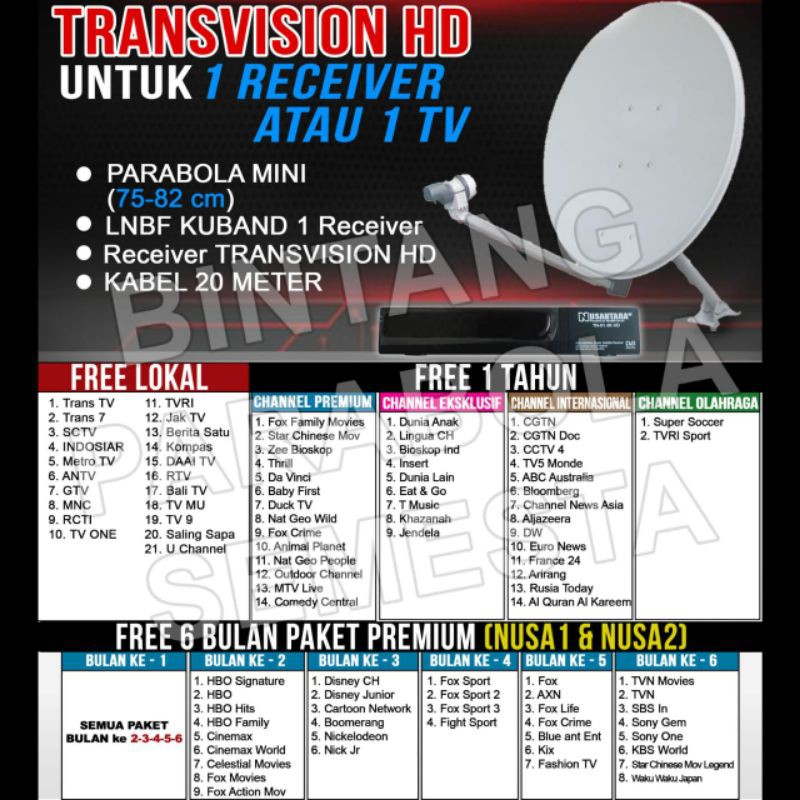 Antena Parabola Mini Indovision - MNC Vision Bebas Iuran BulananRp750000. Selain Harga Antena parabola bebas biaya bulanan salah satu yang perlu anda ketahui adalah chanel chanel luar negeri pada parabola C Band baik yang berasal dari asia tenggara asia timur timur tengah maupun eropa hampir semuanya menggunakan bahasa lokal masing masing misalnya dari thailand akan menggunakan bahasa thailand dan seterusnya. Pasang Parabola Mini Bebas Iuran Bulanan.
