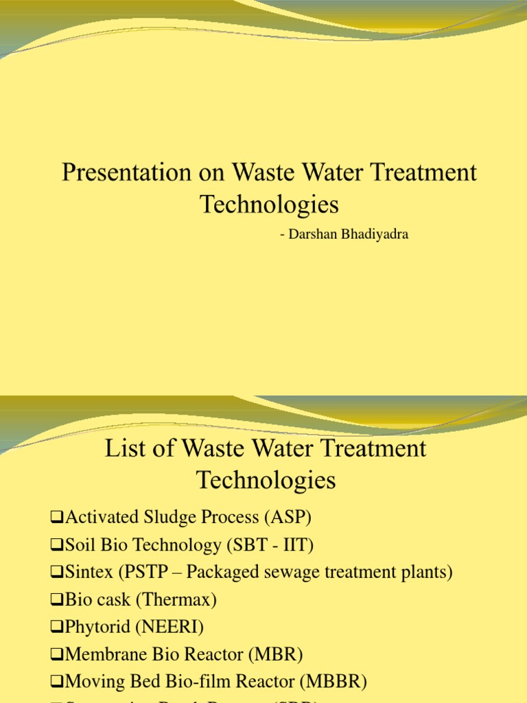 Other methods of sewage disposal 1. Seminar presentation on Wate water treatment plant. MBR Sewage Plant MR25-I Car Wash Sharjah Municipality pdf.